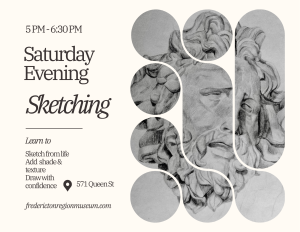 The Fredericton Region Museum invites you to take part in small-group drawing and watercolour lessons, designed to inspire creativity in a welcoming and historic setting. Whether you are just beginning or looking to refine your skills, these workshops offer a unique opportunity to learn, create, and connect with the museum’s rich collection.